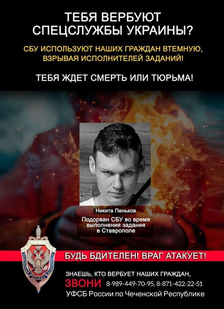 УФСБ России по Чеченской Республике предупреждает об активизации деятельности украинских спецслужб! Будьте бдительны и осторожны, не сообщайте незнакомцам никакие сведения о себе, о ваших родственниках, коллегах по работе, об учителях и одноклассниках.