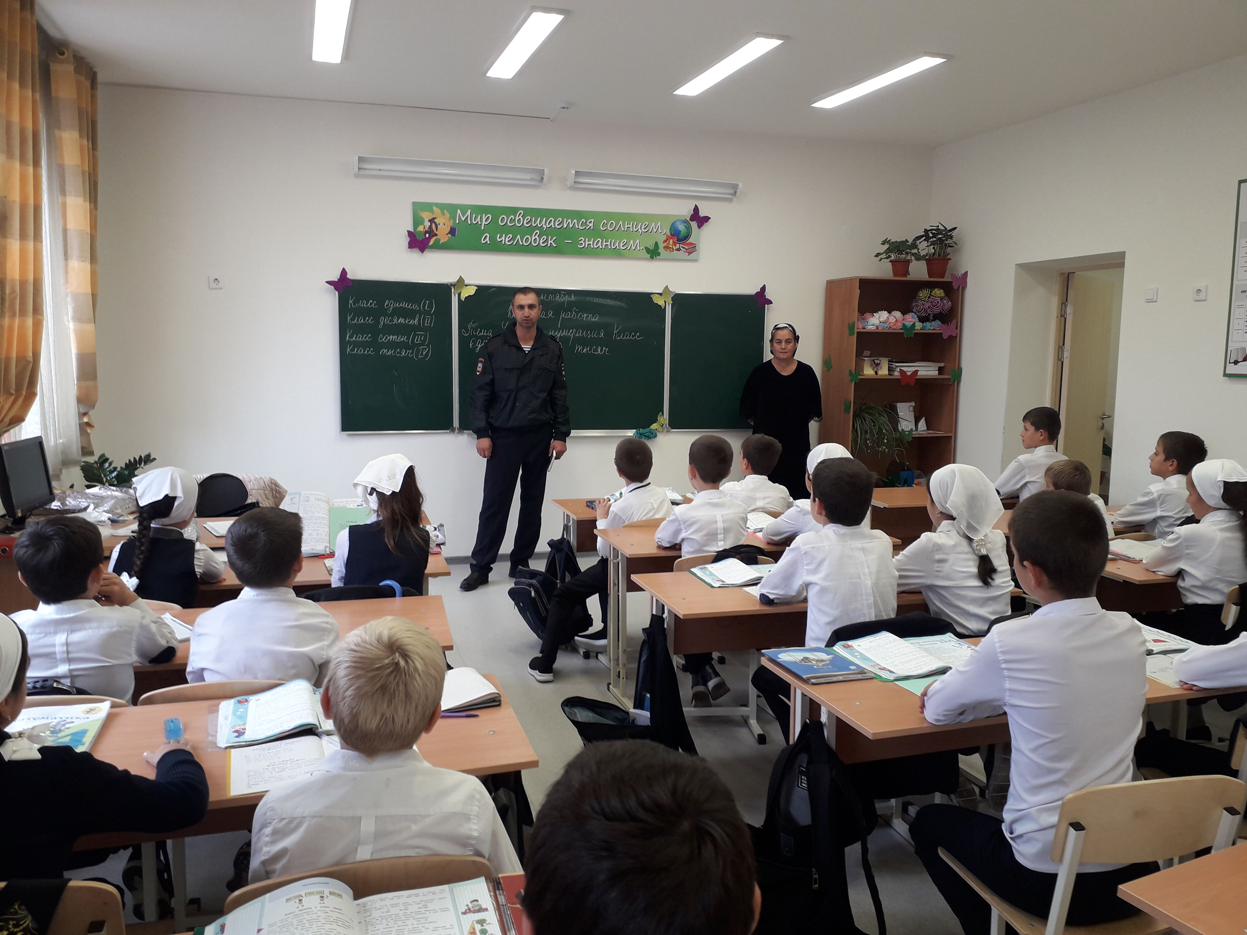 Провел беседу инспектор ОПДН ОМВД по Ачхой-Мартановскому району капитан полиции Туаев В.Ю. на тему "Пропуски учебных занятий без уважительной причины" с учащимися 5-8 классов.