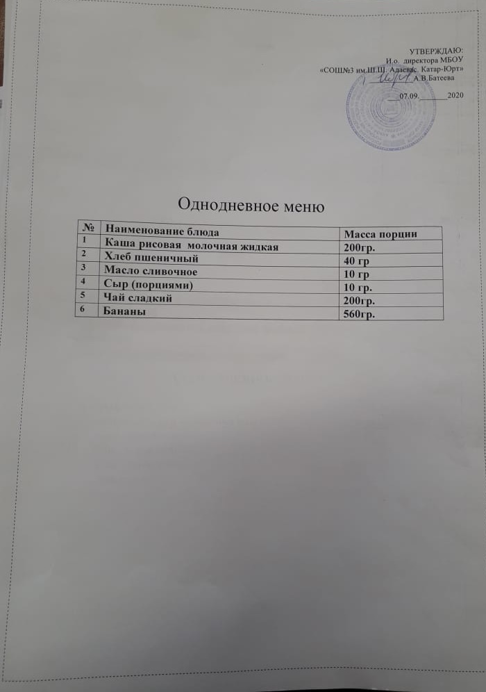 Меню горячего питания.