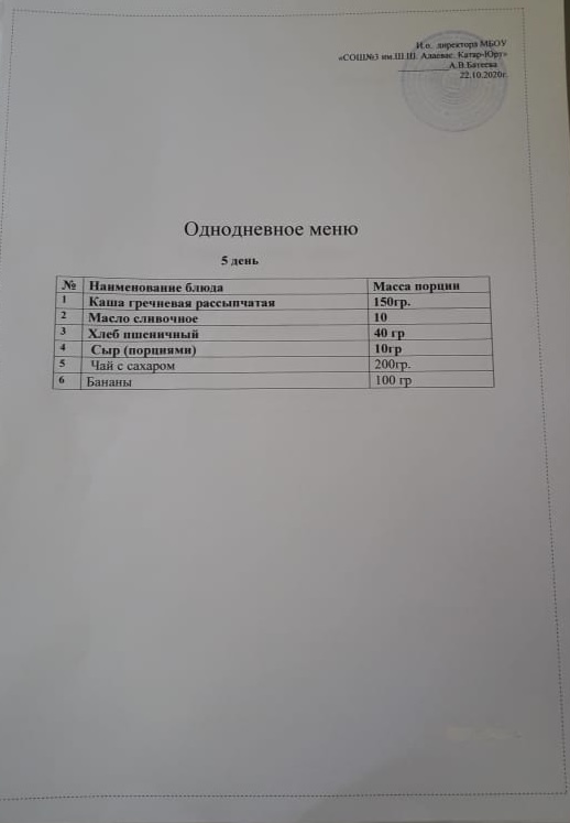Меню горячего питания