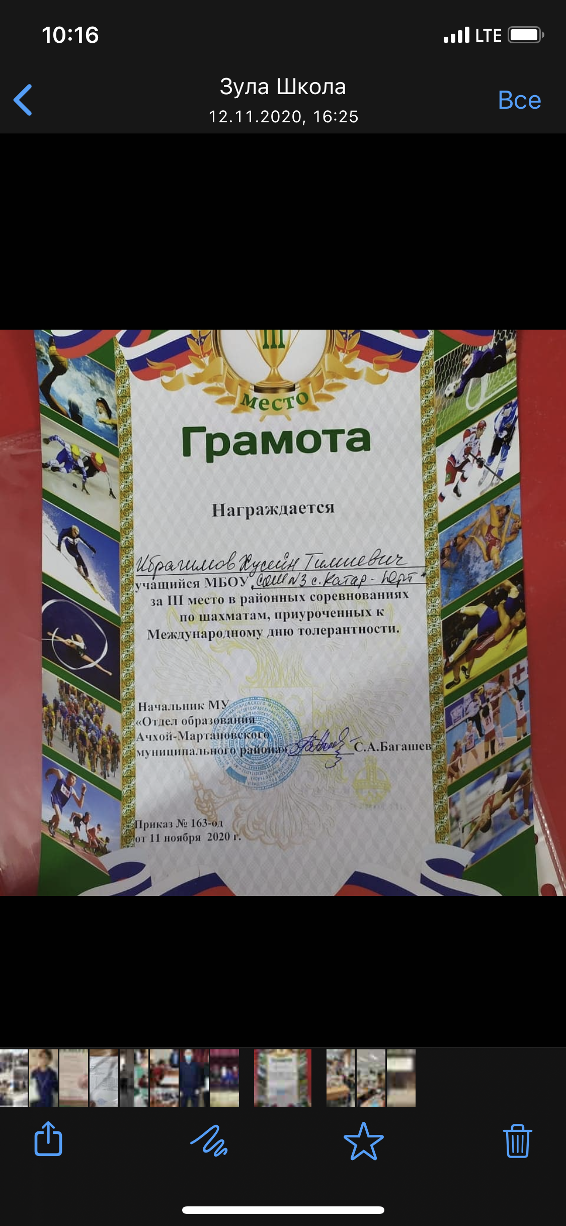 Поздравляем Ибрагимова Хусейна Тимиевича ученика 9 класса, занявшего 1 место в зональном этапе муниципального турнира по шахматам.