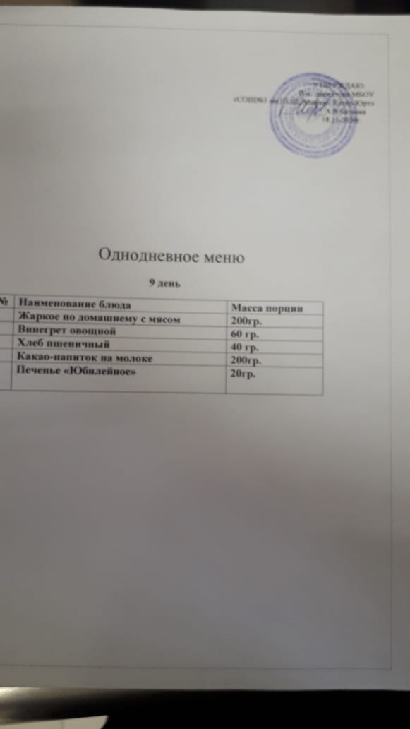 Меню горячего питания