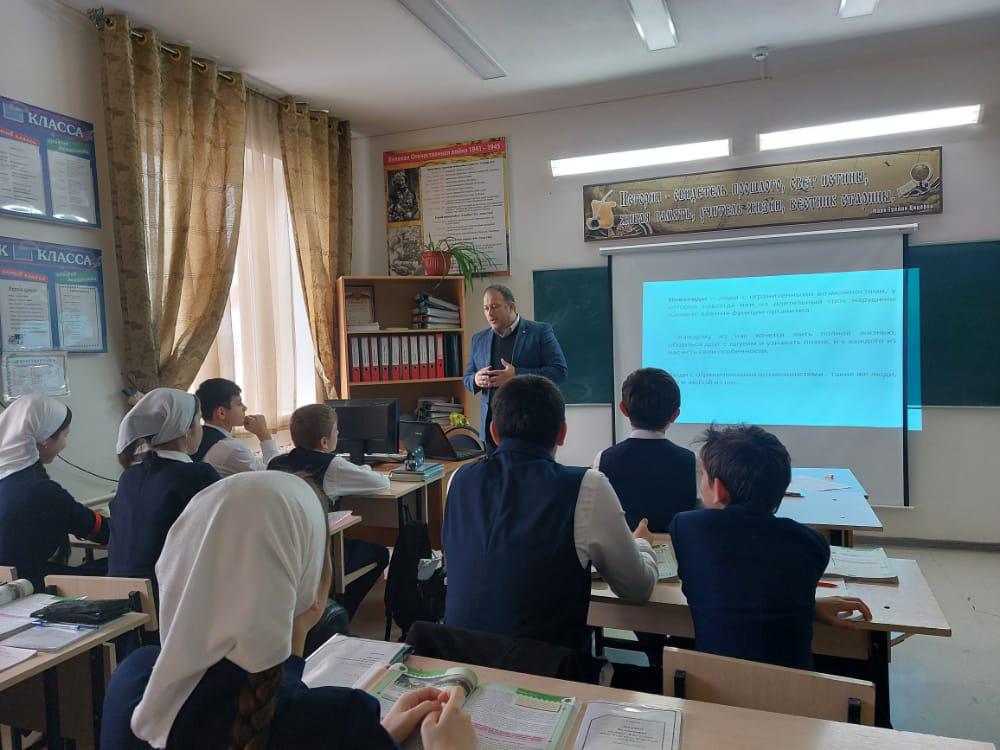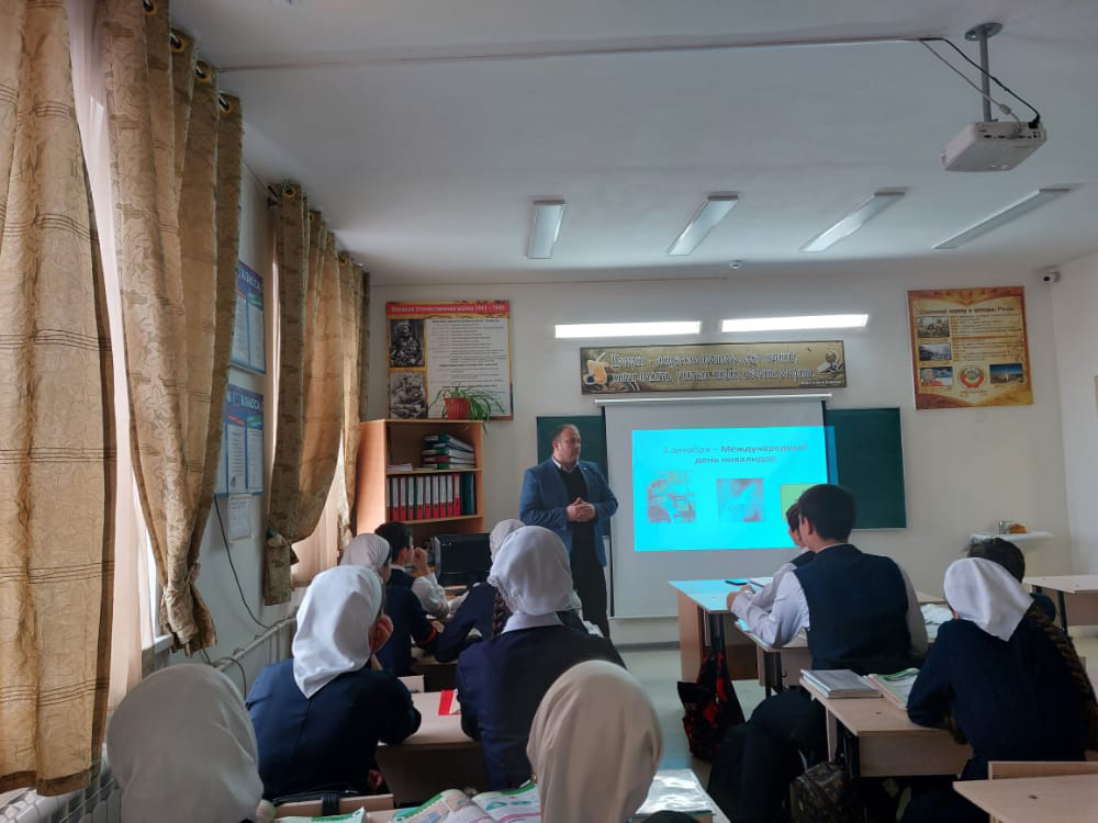 В МБОУ"СОШ №3 им.Ш.Ш.Адаева с.Катар-Юрт" Прошли уроки доброты. Основные цели урока - сформировать толерантное отношение к инвалидам и лицам с ограниченными возможностями здоровья по слуху и зрению, привлечь внимание общества к сложностям, с которыми сталкиваются инвалиды в повседневной жизни.