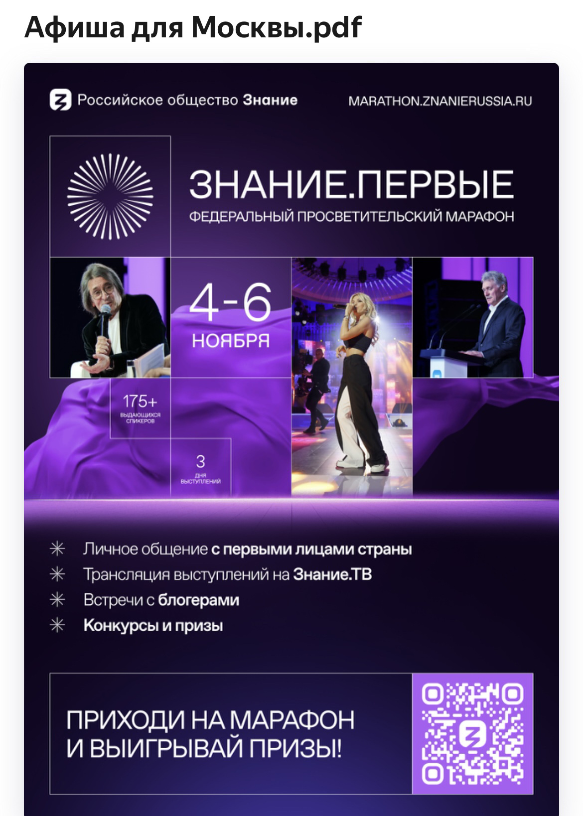 Информационные материалы о Федеральном просветительском марафоне Знание.Первые