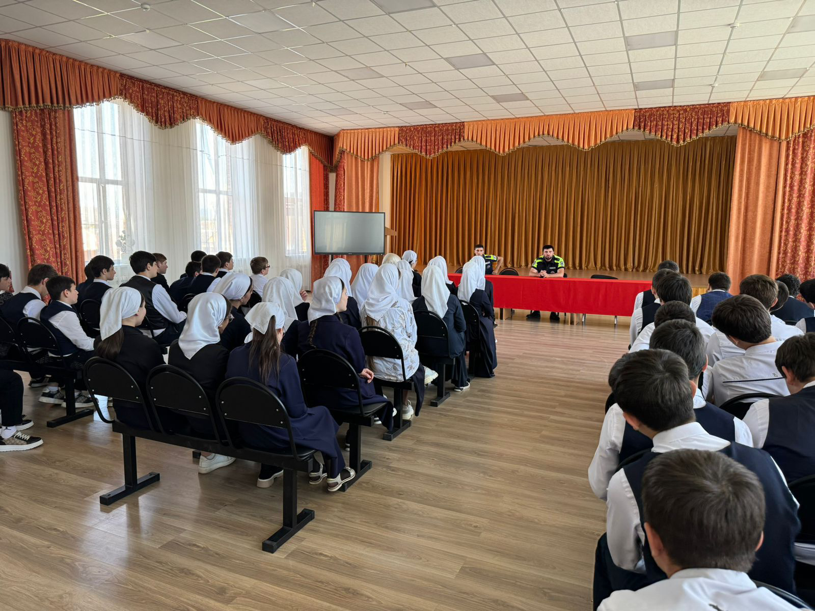 На базе МБОУ «СОШ №3 им.Ш.Ш.Адаева с.Катар-Юрт» сотрудники ГИБДД Черхейко Турпал-Эла Ибрагимович и Кахиров Шамал Муратович провели беседу с обучающимися на тему «Правила безопастности при движении на